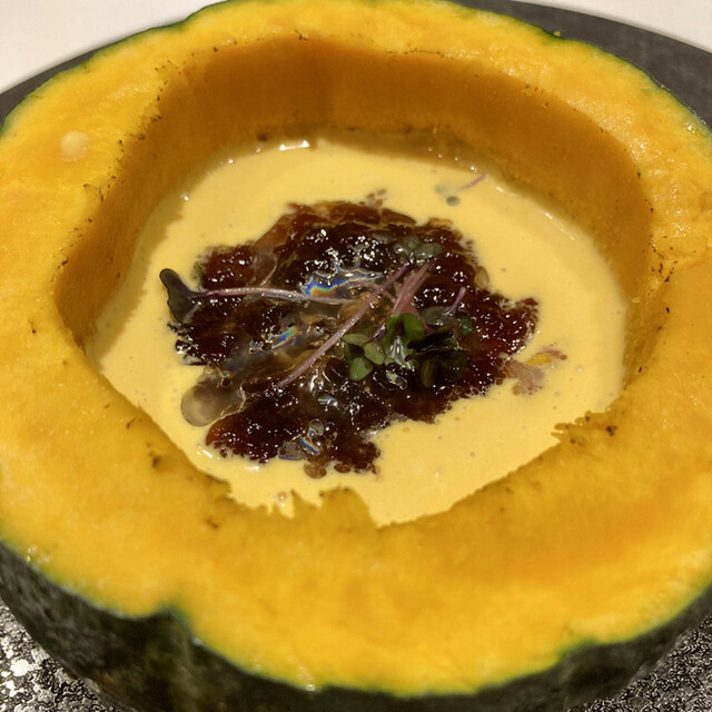 南瓜のスープは、秋を思わせる風情へと一気に持ち込む優しさがありました。大好きな一品です。