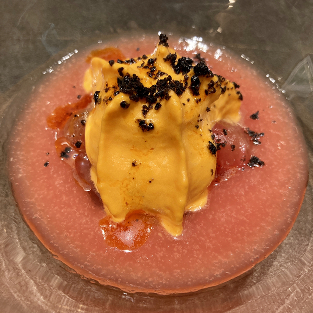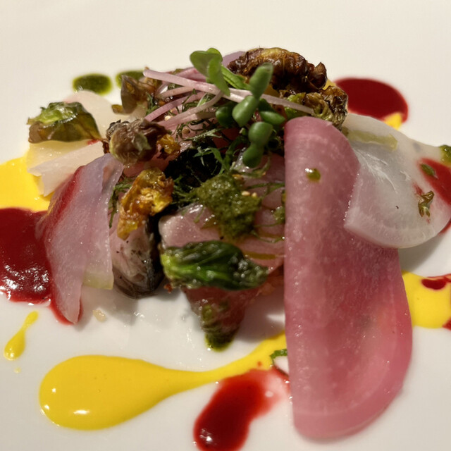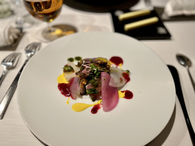 鱈白子は、ビスクと枝豆の二重ソースが全てをまとめてよく知っている白子ポン酢とは全く別の美味しさでした。