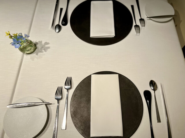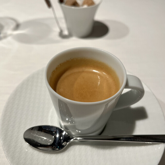 真鯛のスープと椎茸の茶碗蒸し風は絶妙、リ・ド・ヴォーと山菜の組み合わせに山の恵みを、のと115という椎茸とフォアグラのロッシーニは滋味深く、真鯛のポワレは皮がパリッ!で身がフワフワで海の恵みを、牛ランプは赤身って美味いよねと脂の旨さより肉質本来の旨味を堪能した気分で、デザートがフォンダンショコラと冷たいブリュレ?に木苺のソースで幸せでした。皿数はもっと有ったように思いますが、兎に角ひたすら食べまくってしまったので不明です。で、皿によって出てくるカトラリーの例の日本刀造りのナイフの切れ味は、最高で食べるのにストレス感じないサスガの一品だと改めて思いました。