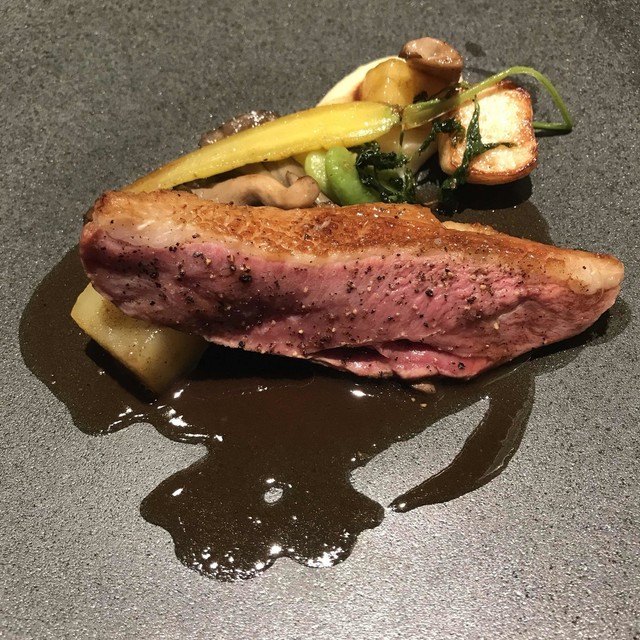 香箱のリゾットも、クエと牡蠣のローストも、デザートのタワーも、まんで美味かったけど、メインの小鴨が、またダラほど美味かった。