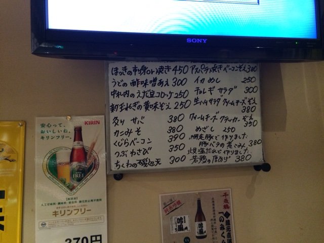 東京の立ち飲み屋と比べると、すこ〜し料理全般、金額高めの設定だけど