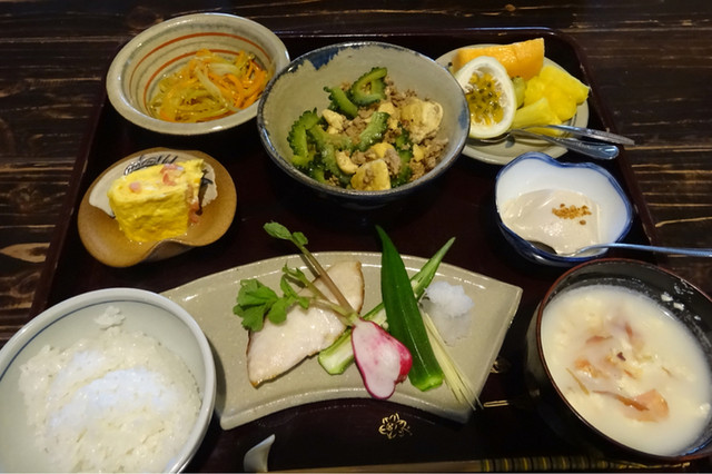 この日は大好物のじーまみ豆腐もふーちゃんぷるーもあるわ。朝から嬉しいのだ。