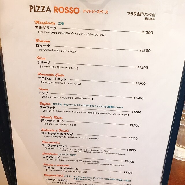 『ディアボラ•ロッソ』1700円(辛いサラミが乗ったトマトソースのピザ)