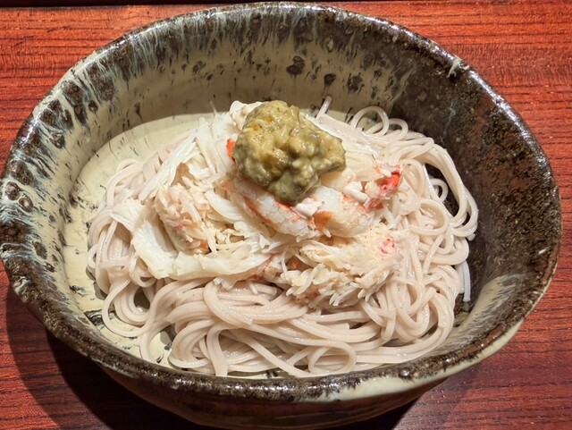 ⚫︎ 綺麗にほぐされた松葉蟹と、蟹酢で和えたキャビア