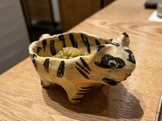 店内あちこちに虎の絵や器が置かれているので、大将に、寅年でしたか?と尋ねたら、