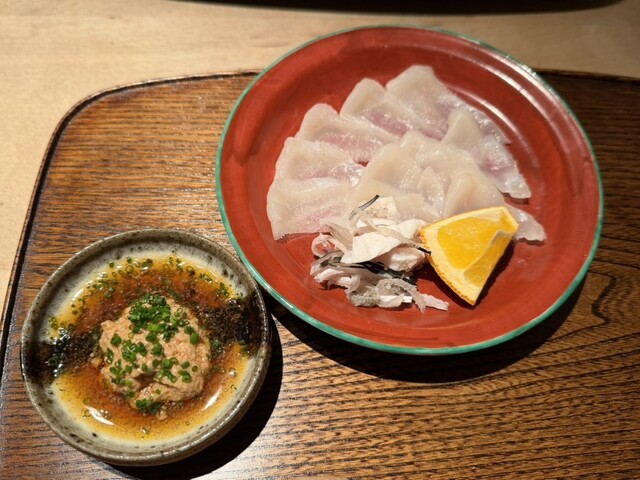 ⚫︎鯛と鰹のおつくり、赤雲丹添え