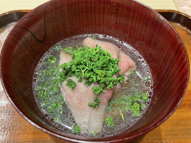 シャキッとした北寄貝と、甘い新玉ねぎのお椀