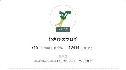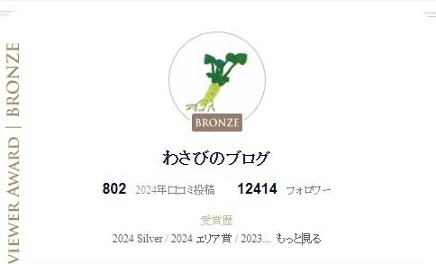 わさびのブログ (兵庫県) Tabelog Reviewer Award受賞者Tabelog Reviewer Award受賞者 認証済