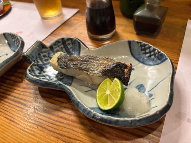 日本酒吞み比べ、へだいとツバスのかま塩焼き、目板かれいの煮つけ