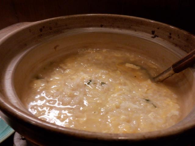 〆に何時も通り雑炊を頂く、日本酒を追加で・・・お鍋に日本酒最高の組み合わせです。