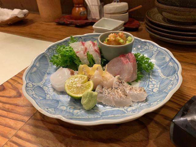 次に地魚の明石の魚の刺身が・・明石さわら、明石鯛、明石たこ鮮度のいい神経抜きされた魚は美味しい。