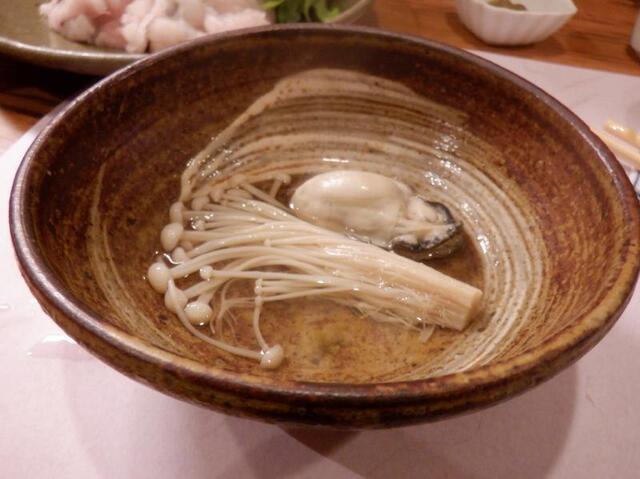 全てに牡蠣を使った料理で前菜の牡蠣の有馬山椒煮は地の牡蠣+有馬山椒のコラボ、牡蠣の風味を残しつつ山椒+醤油の風味で仕上げた逸品で美味し頂きました。