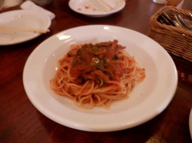 オイルサーディンとオリーブのトマトソーススパゲティ・・900円