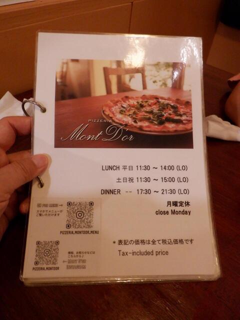 今回の目的のピザのメニューを拝見 2018年2月現在の価格