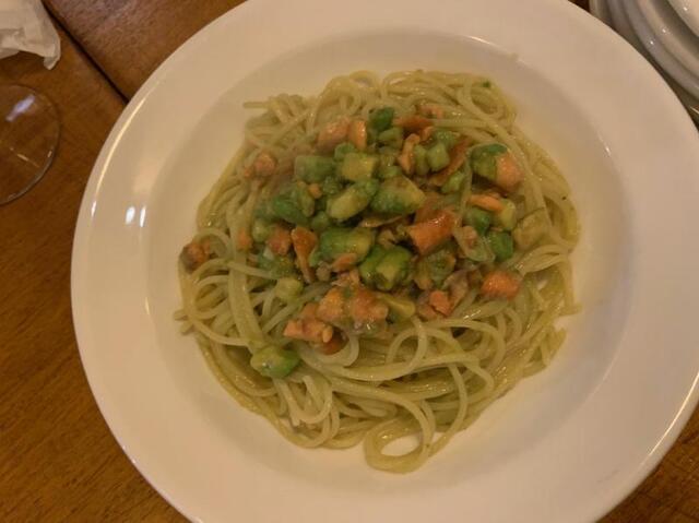 パスタは2種、サーモンとアボガドのスパゲッティー、ポロネージェスパゲティー