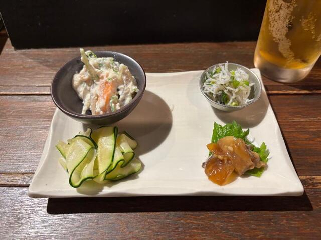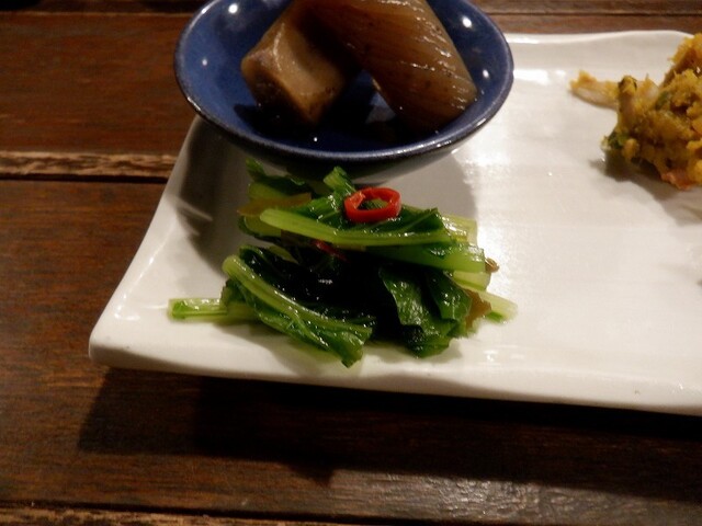 どれも一工夫されていてお酒のあてにいい、牛蒡と蒟蒻も味が入っていて美味しかった。