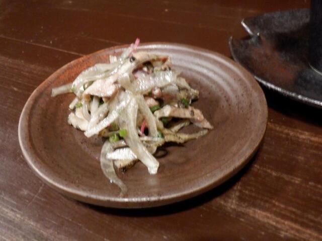 こちら定番のモモのたたき・・・たっぷり葱と柚子胡椒、ポン酢テーストで頂く、あっさりで適度な歯応えがあり旨し。
