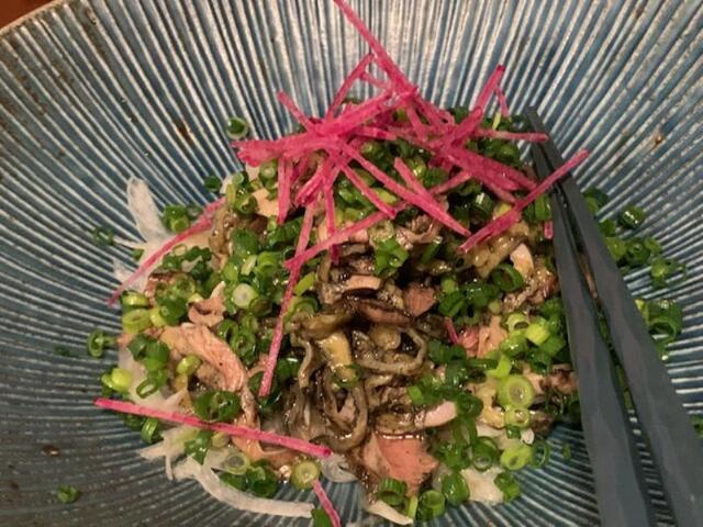 モモのたたきも外せないですね、ポンズと柚子胡椒で、日本酒が欲しくなる一品ですね!