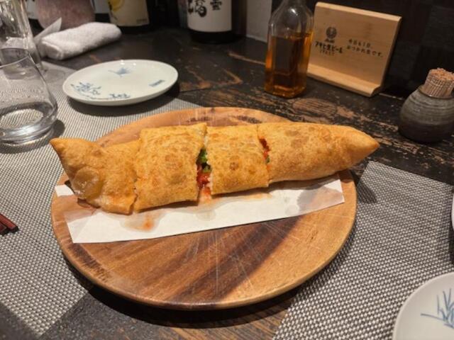 料理3品目・・・今から旬の鱈白子を青紫蘇でラップ、揚げ物・・春巻で、山椒塩で頂きました。