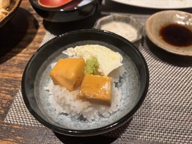 料理7品目・・・口の中で蕩ける炙り白子軍艦巻き・・4人口を揃えて最高!!