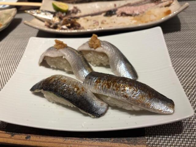 〆のお寿司・・カンパチ、サワラ炙りで、芽ねぎ・・