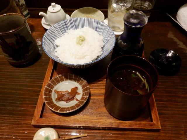 16品目・・〆ご飯・・鳥飯と鳥スープ、先ずシンプルに鶏飯を次に本山葵トッピング、最後にスープをかけてスープご飯で頂きました。