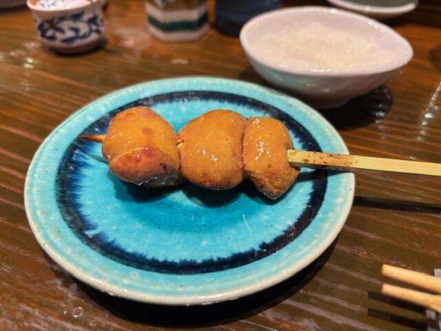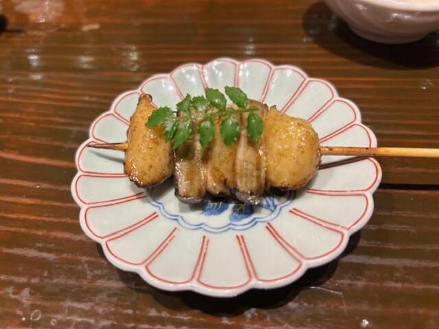 先ずはさび焼・・胸肉の塩におろし生わさびがトッピングされている、塩と本わさびの控えめな辛さにわさび本来の甘味が際立つ、美味しい1串、串一本のボリュームもあり美味しい!