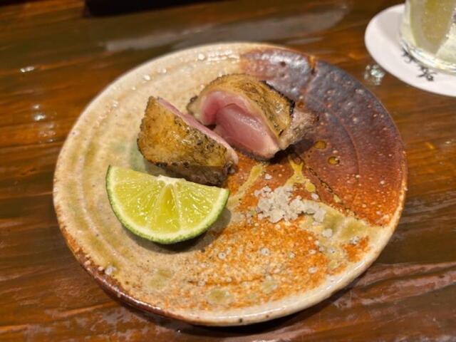 6品目は天草大王もも肉のタタキ・・・存在感を感じるもっちりで旨し。