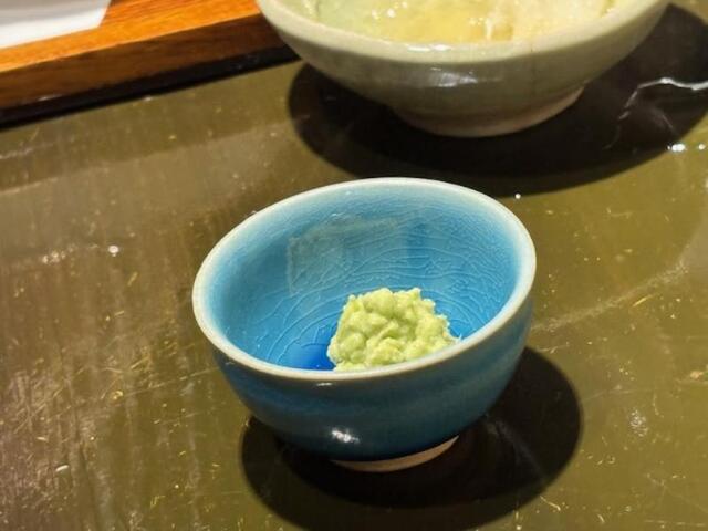 6品目・・さび焼き(胸肉)・・たっぷり本山葵トッピング、しっかり苦味→辛味に変わった本山葵のみで脂が少ない胸肉なのでかなり山葵感を味わいました・