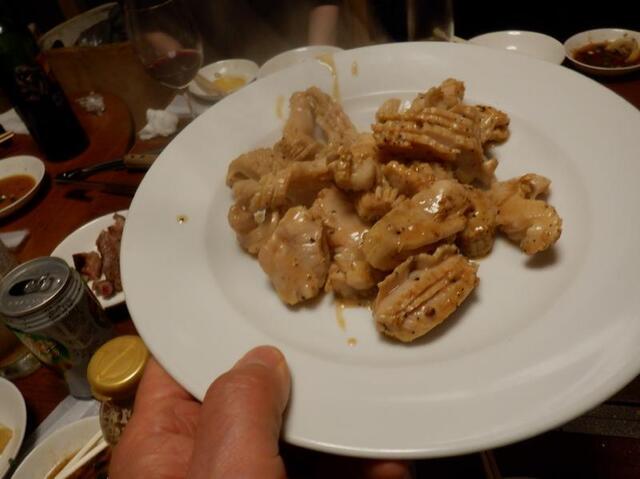 上ミノを・・柔らかい上質のミノで炙った感じで頂きました、甘辛和風ダレで美味しく頂きました。