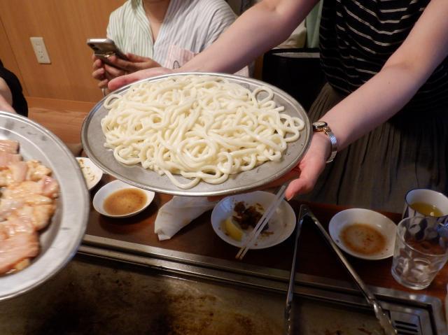 次は佐用名物ホルモンうどん、これは鉄板じゃないと味わえない、今回も持参のタレでカレー風味で・・・