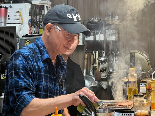 名物のタンステーキを焼くおさむちゃん