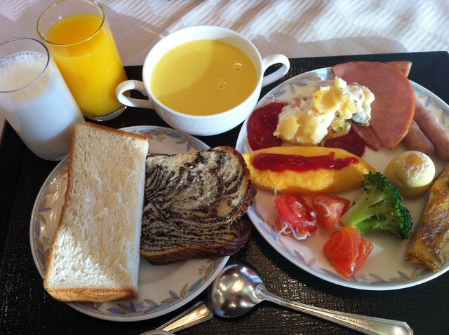 また、夕飯っぽい肉メニューも数種類揃っており、ホテルの朝食バイキングでここまで揃っているホテルは初めてです。ホント、びっくりしますよ。朝から元気が出ます!あと、ソフトクリームも朝から堪能できます。