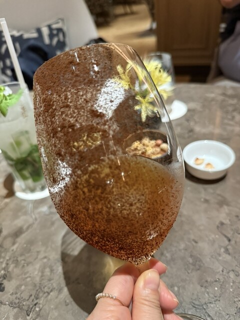 カクテルは、東京の街の名前が付けられたオリジナルメニュー。コーヒー好きとして選ばずにはいられなかったのが「清澄白河」。グラスの縁にコーヒーパウダーがまとわれた、なんとも斬新でアーティスティックな一杯!まさか “清澄白河” がカクテルになるなんて…!と感動でした♡