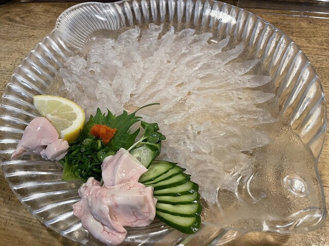 まずは何と言っても大皿に盛ったカワハギを注文。 生のキモが最高にうまい。