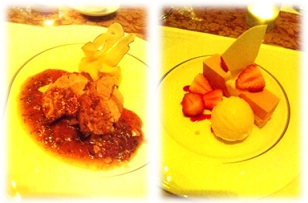 ここも、デザートに入る直前まで「お替りはいかがですか?」とシャンパンをついでくれました