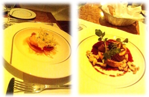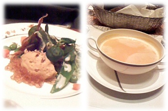 フォアグラブリオッシュトースト、フルーツトマトカプレーゼ、