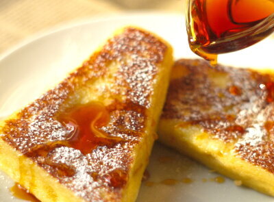 フレンチトーストのアップ見て!この「しゅんで」いるフレンチトースト!このままで充分に美味しいです