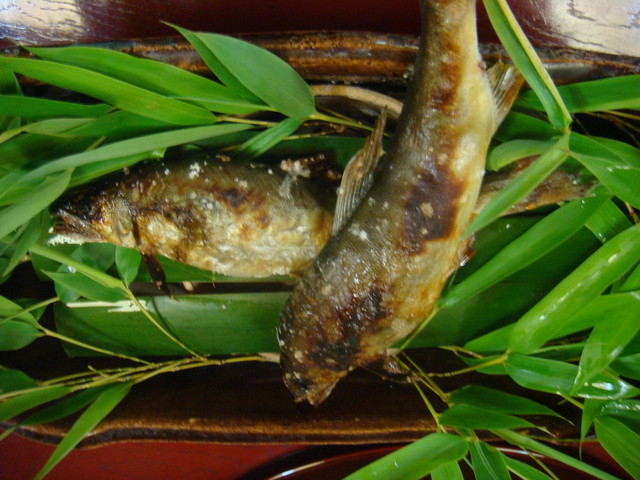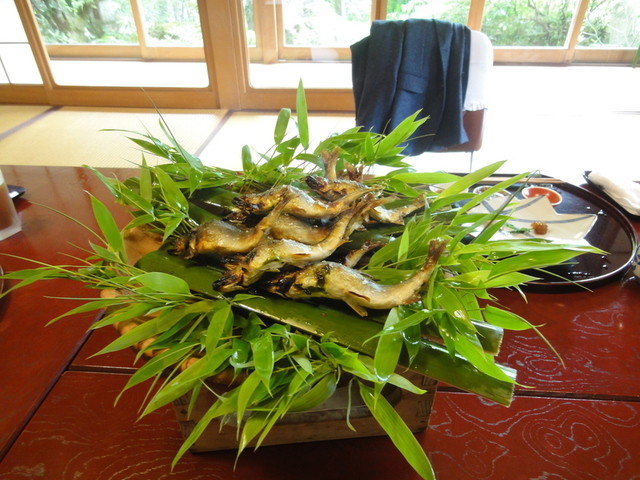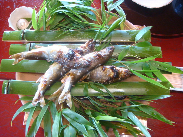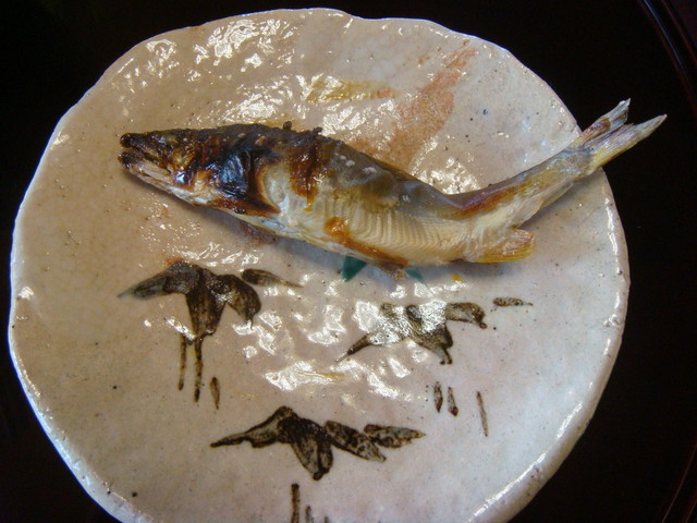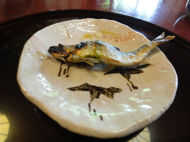 5.鮎の炭火焼きは、煙が立ち上っているまま運ばれます。