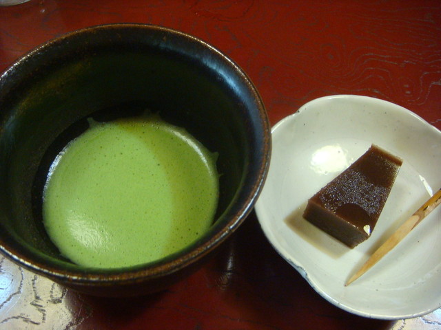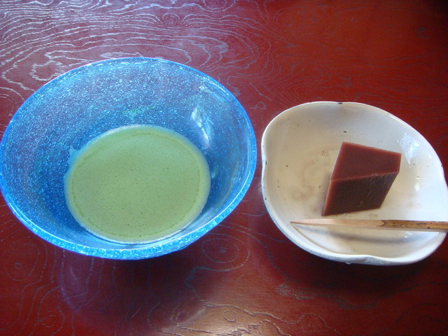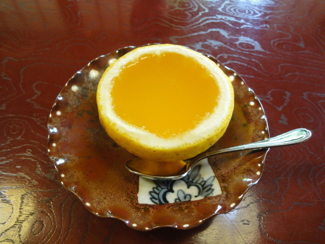 デザートは、甘夏かんと水羊羹、抹茶です。
