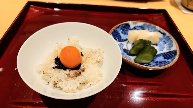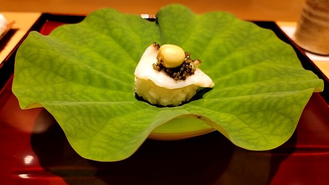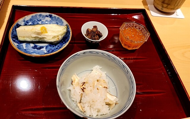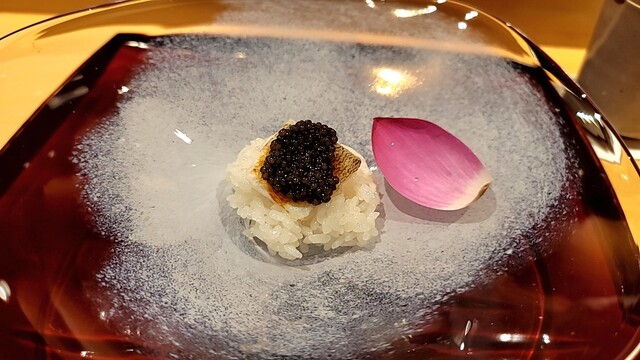 ・蓮の実と糯米に鱚の風干しとキャビア・・・飯蒸?