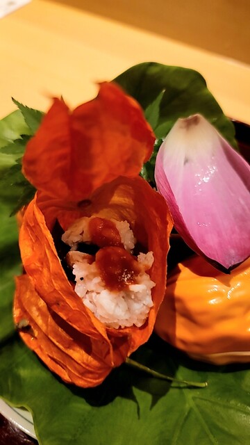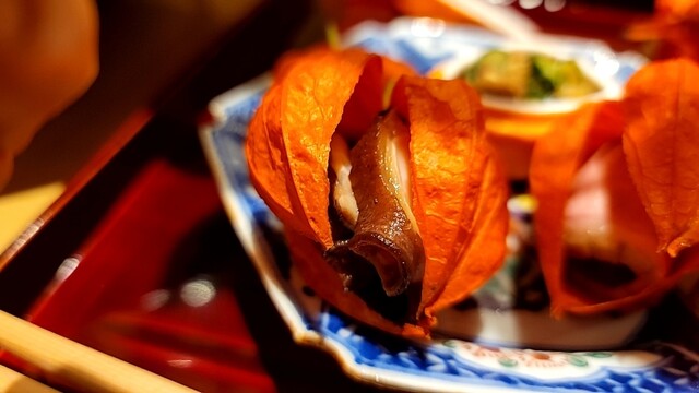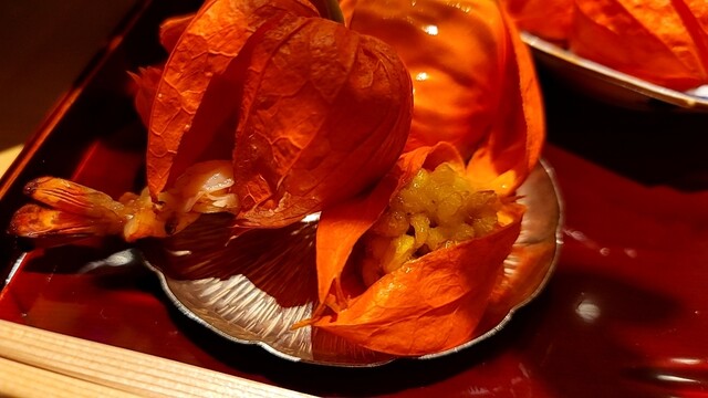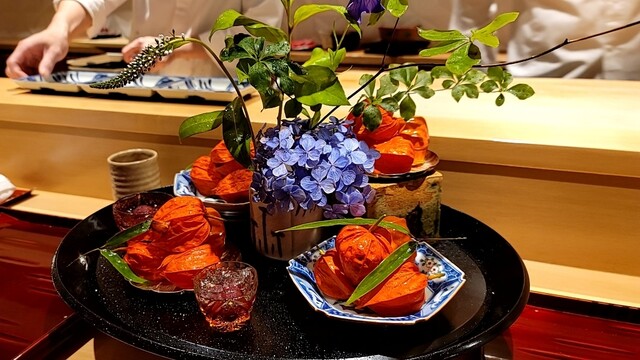 鬼灯を使った八寸は、日本料理でもこの時期の定番ですが、