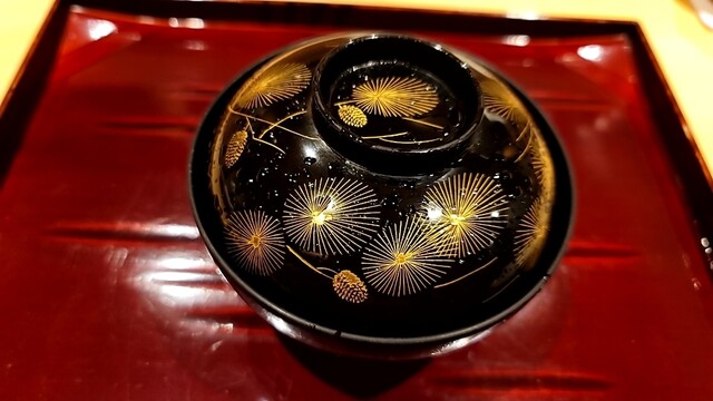 この時期だけの菊花の椀も、黒い塗りに映える。