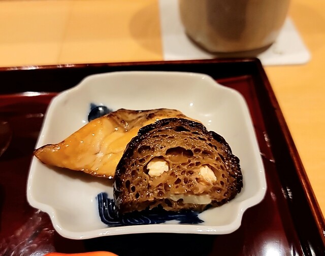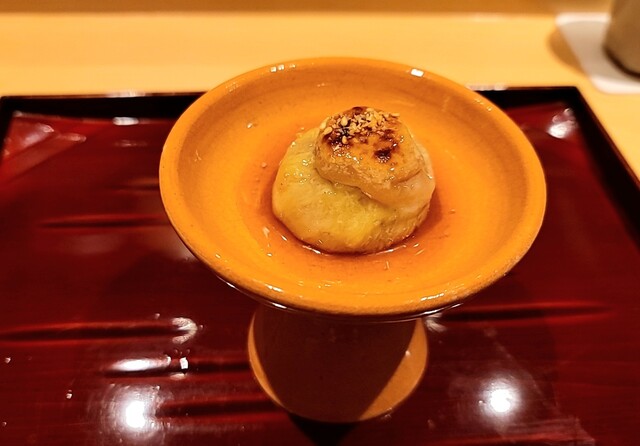 ・帆立味噌幽庵焼きと庄内麩のチーズ挟み