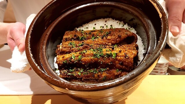 琵琶湖は火鉢で、郡上八幡はカウンターに面した焼き場で。