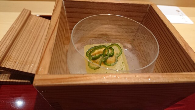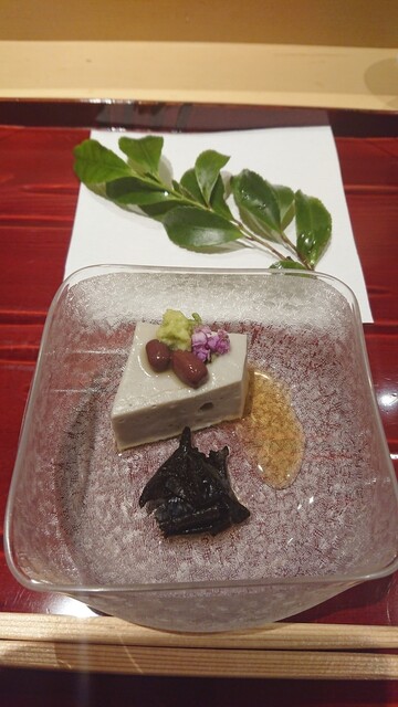 ホッキ、赤貝、鮑、ゴマ豆腐と水前寺海苔をさっぱりした出汁ジュレで。