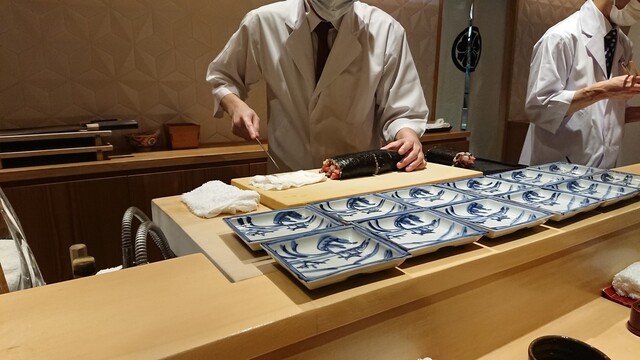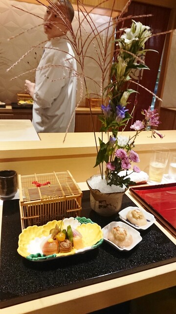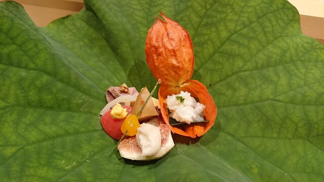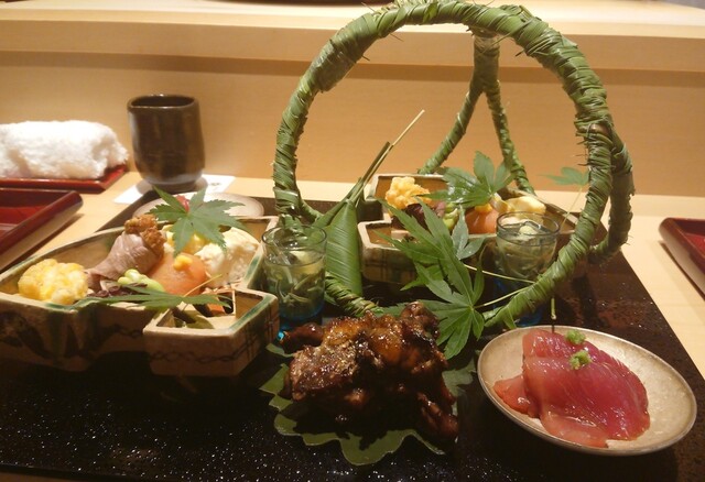 蛸、鰻と昆布、酢蓮根、玉子真丈、酢橘釜にナマコ、松風