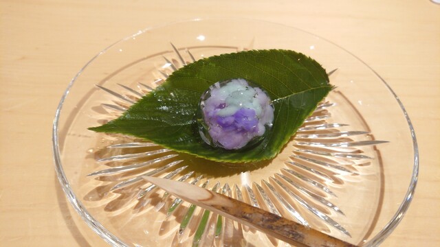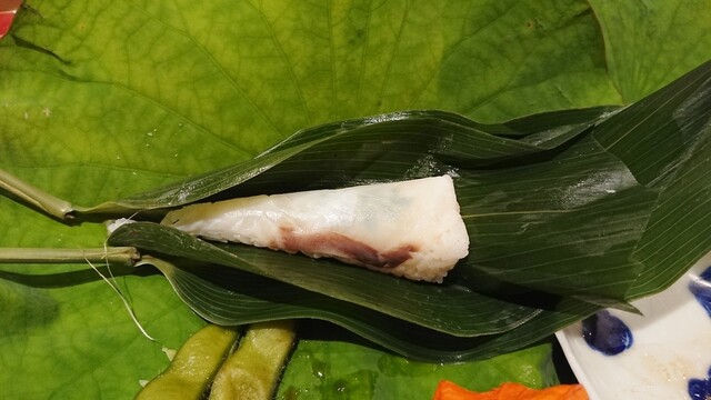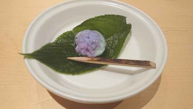 笹で包まれ供され、開けるとツルンとした滑らかな食感の葛餅。