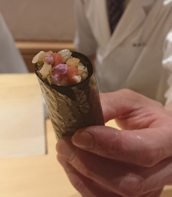 ・鮪とべったらの手巻き(前回までの3種鮪の太巻きから変更)