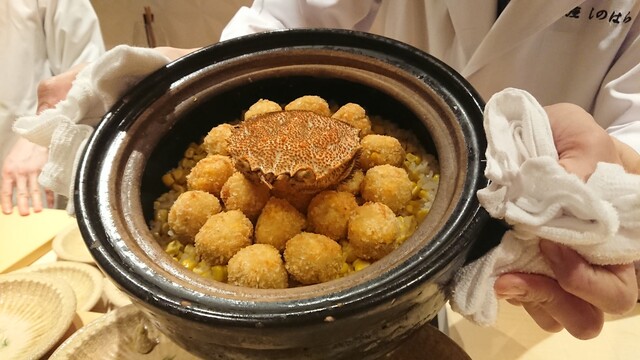 ・上海蟹のご飯は2膳目に・フカヒレ餡かけで